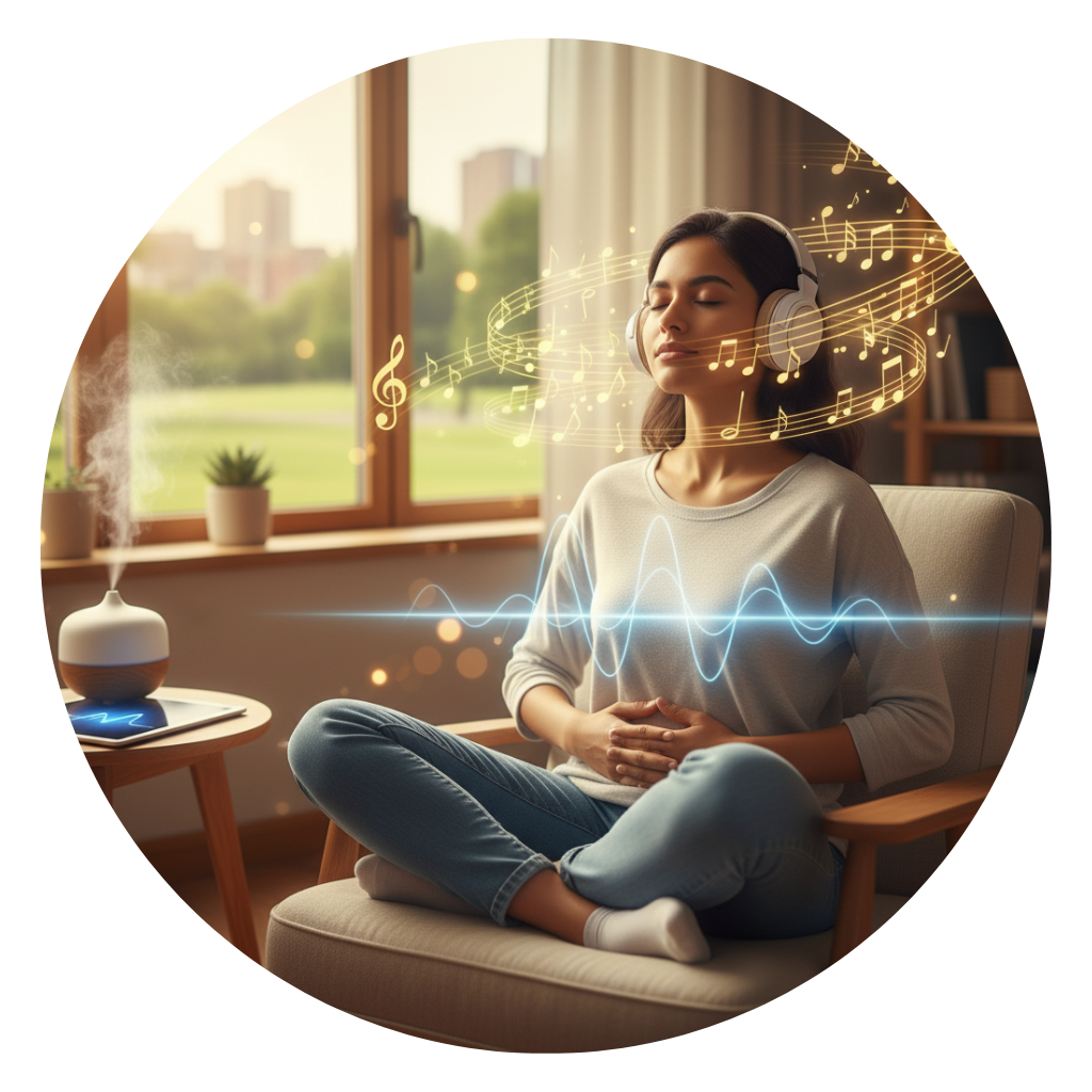 Anxiety relief, guided breathing, and uplifting melodies. Powerful tools to balance the nervous system and manage daily life stress.