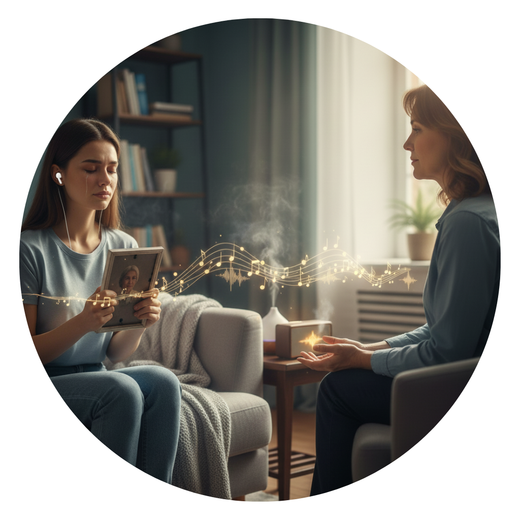 Support for psychotherapy, grief, and inner reconnection. Sound therapy to help individuals process emotions and find peace during hard moments.